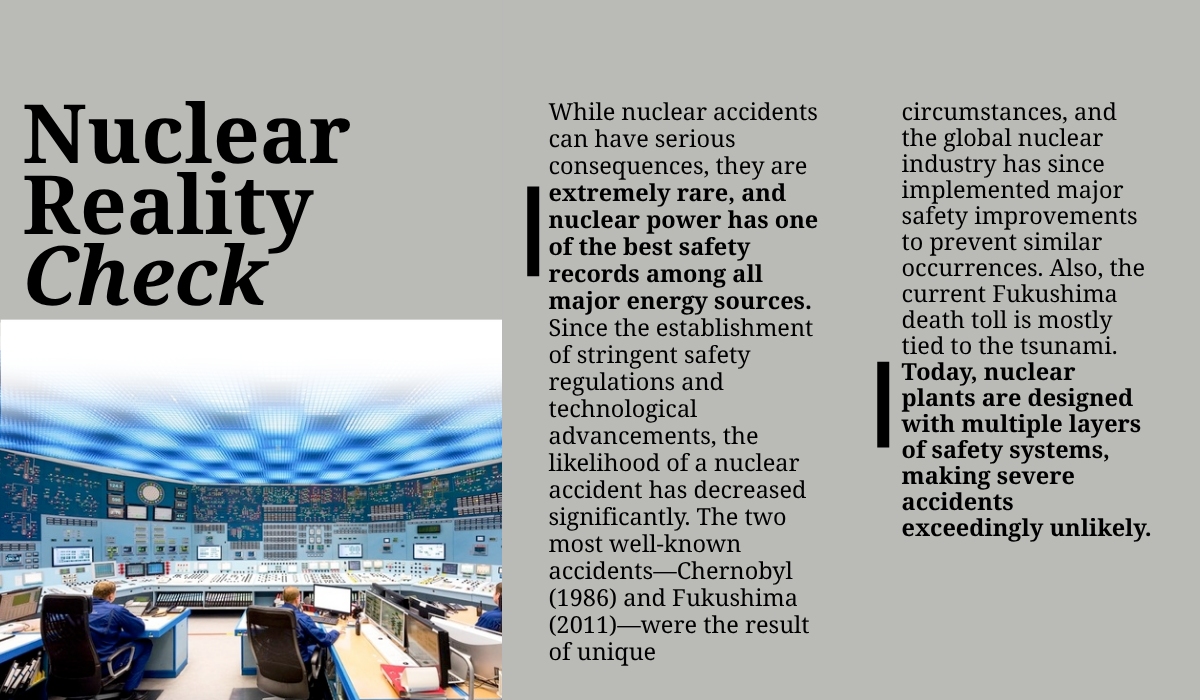 When people think of nuclear power, the word “accident” often comes to mind — and not in a small way. Images of Chernobyl and Fukushima loom large in the public imagination. These events were real, serious, and impactful. But they’ve also contributed to a widespread misconception: that nuclear energy is inherently unsafe.
